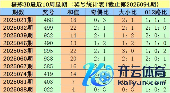 福彩3D第2025088期(上周星期二)奖号为022。其中奖号奇偶比为0:3,大小比为0:3,012路比为1:0:2。