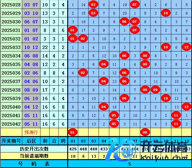 大乐透第2025042期奖号开出:前区06、08、11、18、20,后区05、11。前区号码五区比为1:2:2:0:0,质合比为1:4沙巴体育网体育信息,012路比为2:0:3,后区开出全2路号、全质组合。