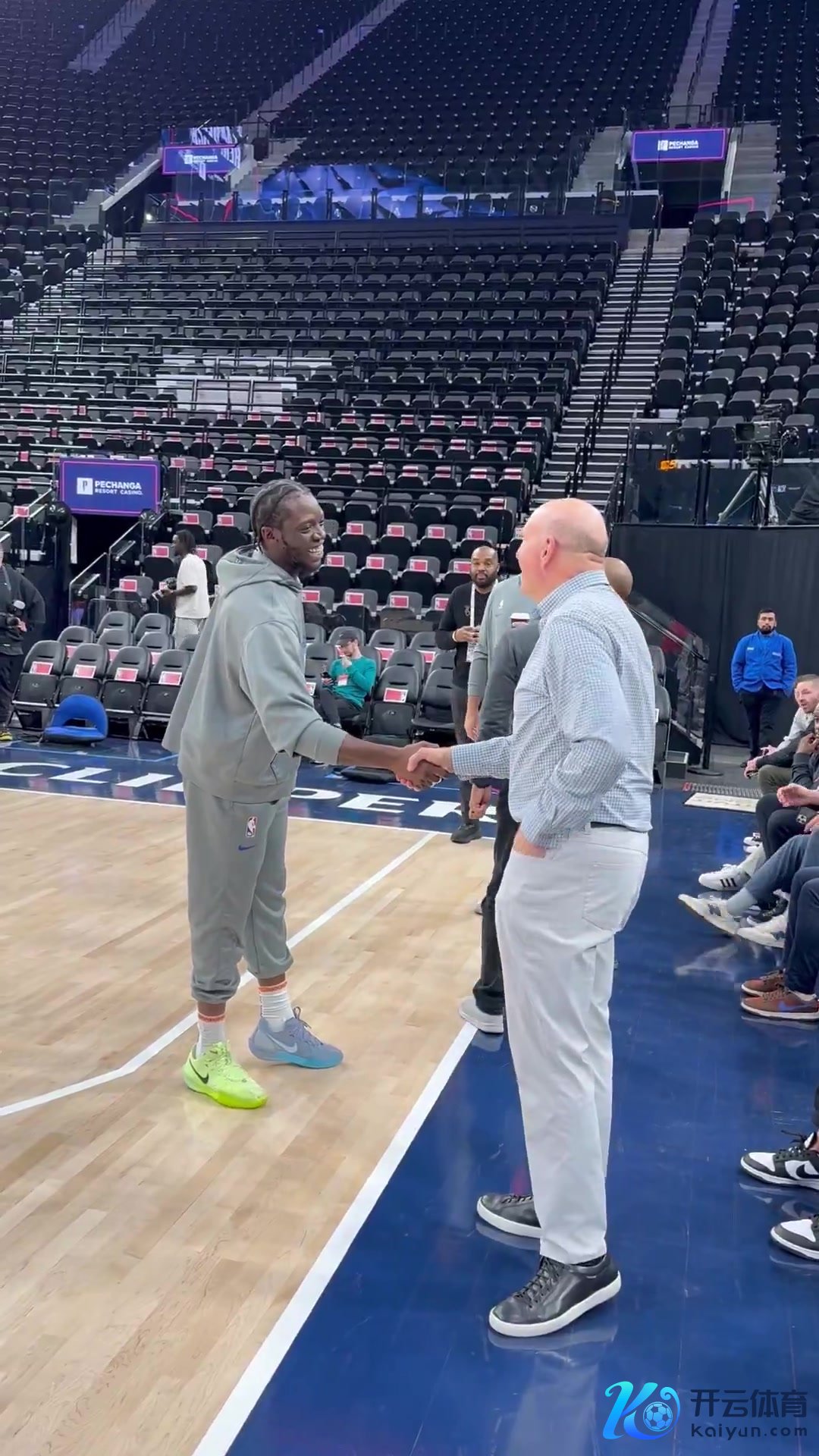 吉吉国王!雷吉赛前和快船雇主鲍尔默持手寒暄沙巴体育网体育信息