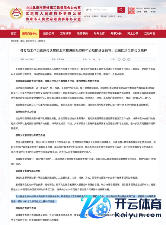 在体育范畴,全力职业北京2022年冬奥会和冬残奥会举办,积极合营北京冬奥组委作念好测试赛和冬奥会、冬残奥会比赛的职业保险责任。积极推动中网赛事升级,研判2021年北京马拉松比赛的可行性。