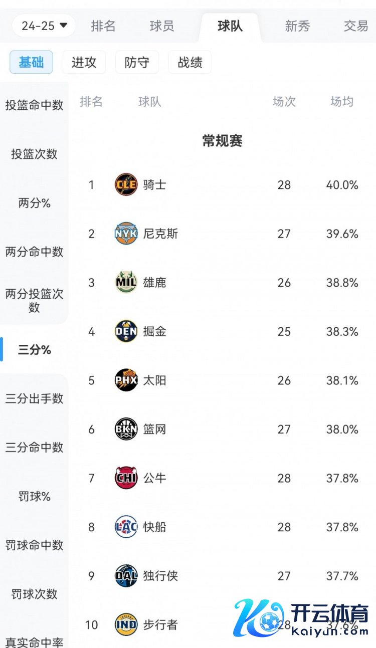 本场比赛之前,骑士三分掷中率40%高居本赛季定约第一。