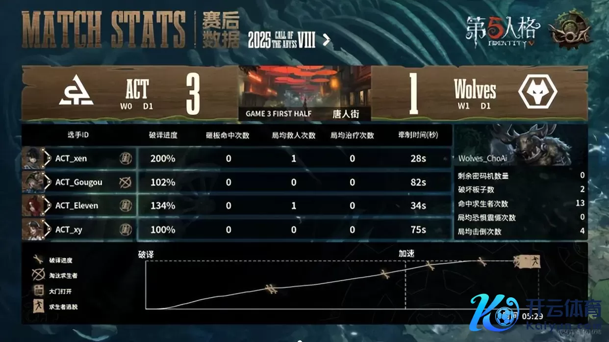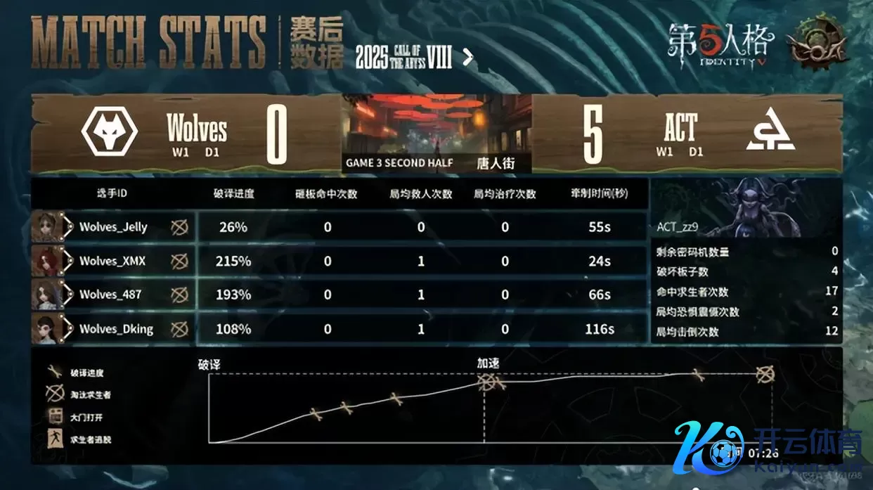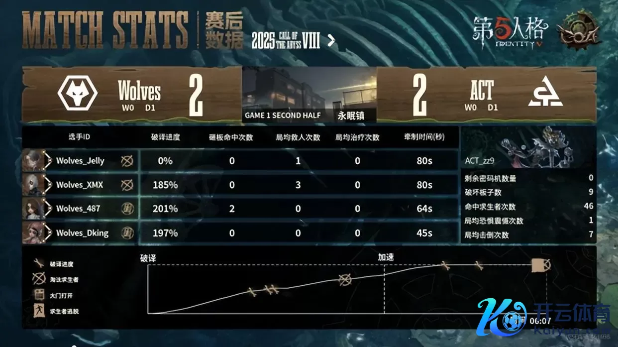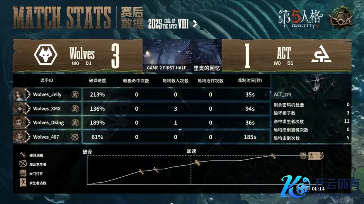 ACT的求生者选择了空军、木偶师、“囚徒”、野东谈主(BAN“喧嚣”);成皆Wolves的监管者ChoAi选择了歌剧演员。(BAN先知、古董商、失火访问员、“骑士”)
