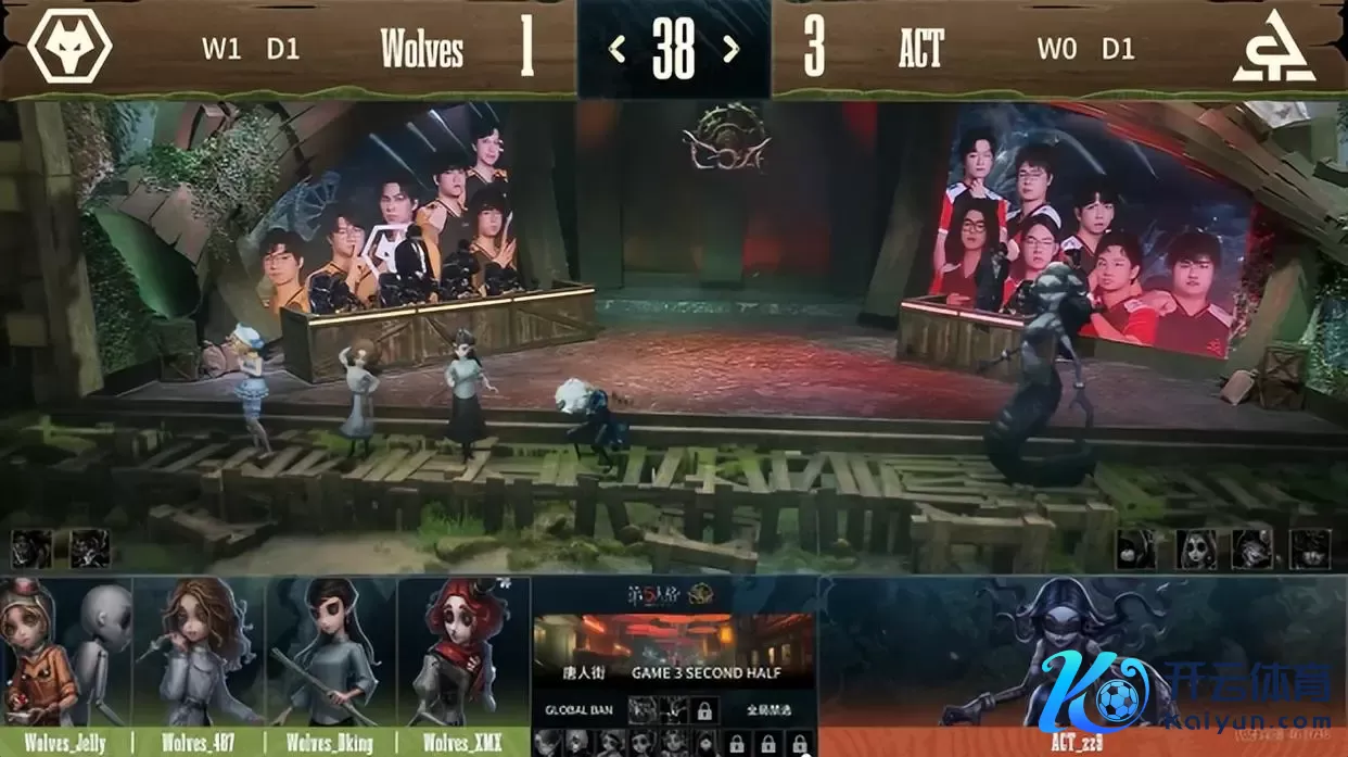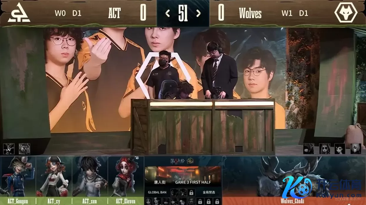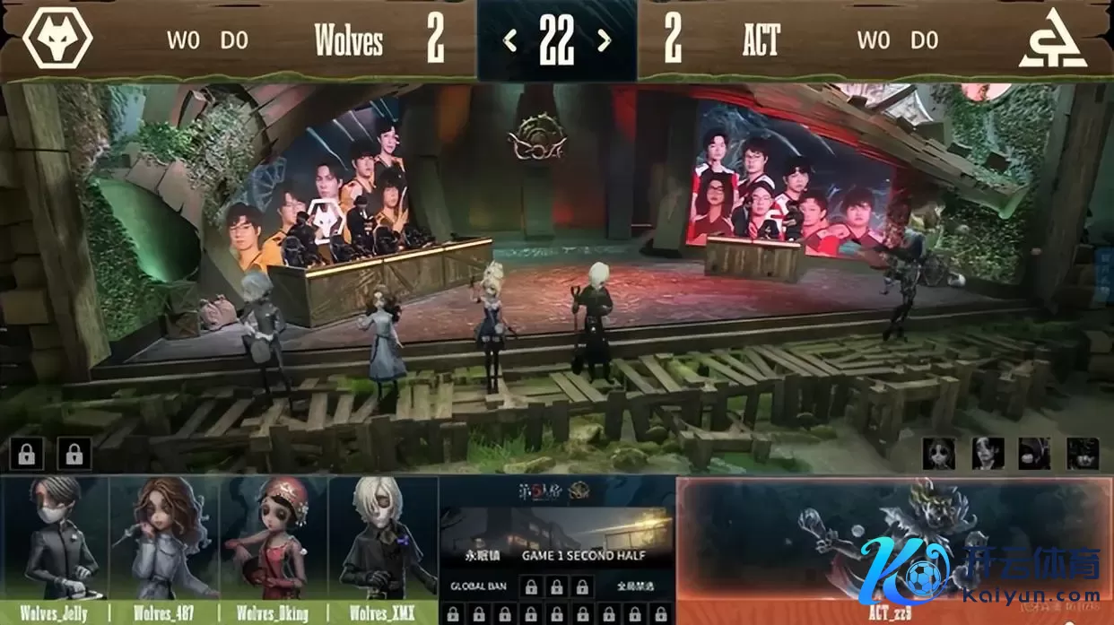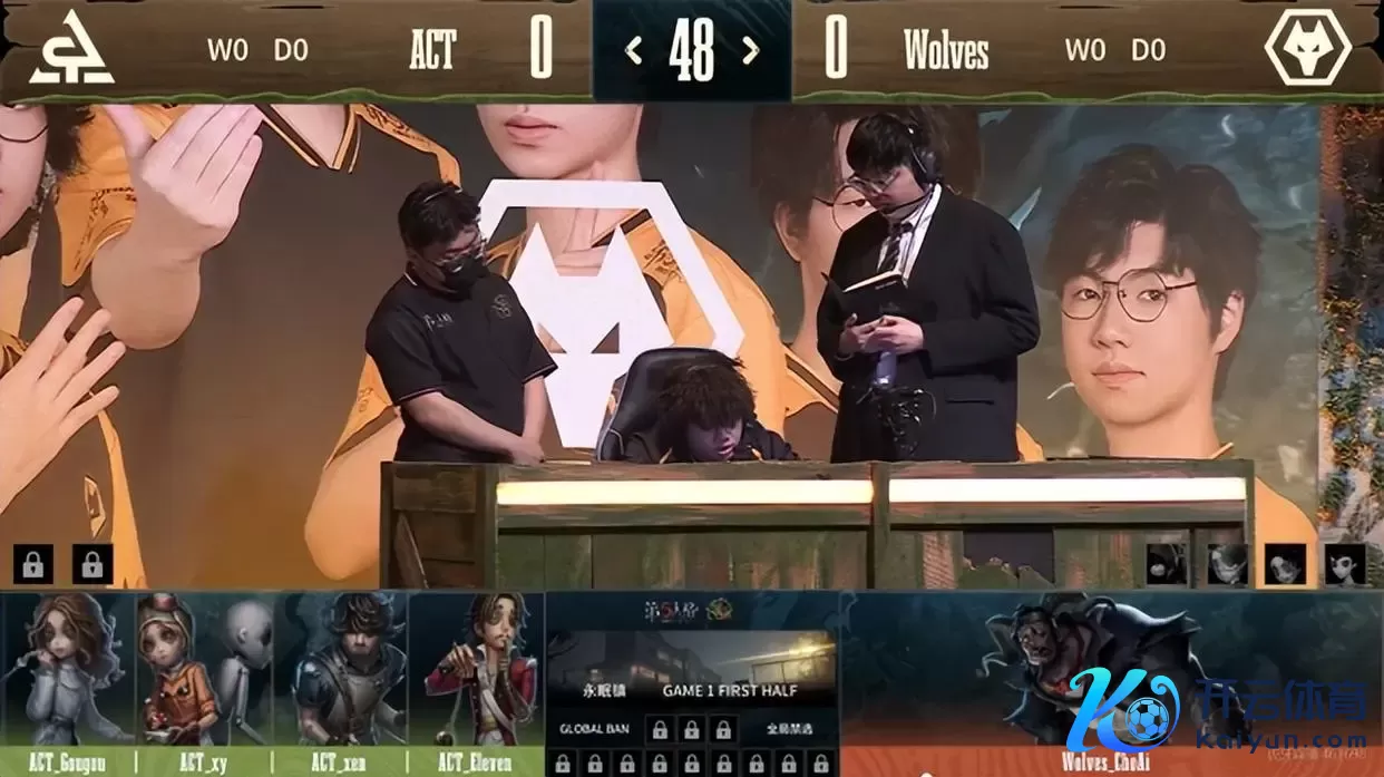 ACT的求生者选择了失火访问员、拉拉队员、病患、啼哭怯夫(BAN时空之影、“喧嚣”);成皆Wolves的监管者ChoAi选择了鹿头。(BAN先知、祭司、古董商、守墓东谈主)