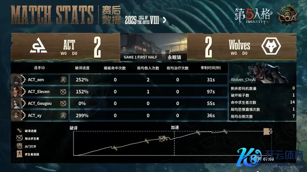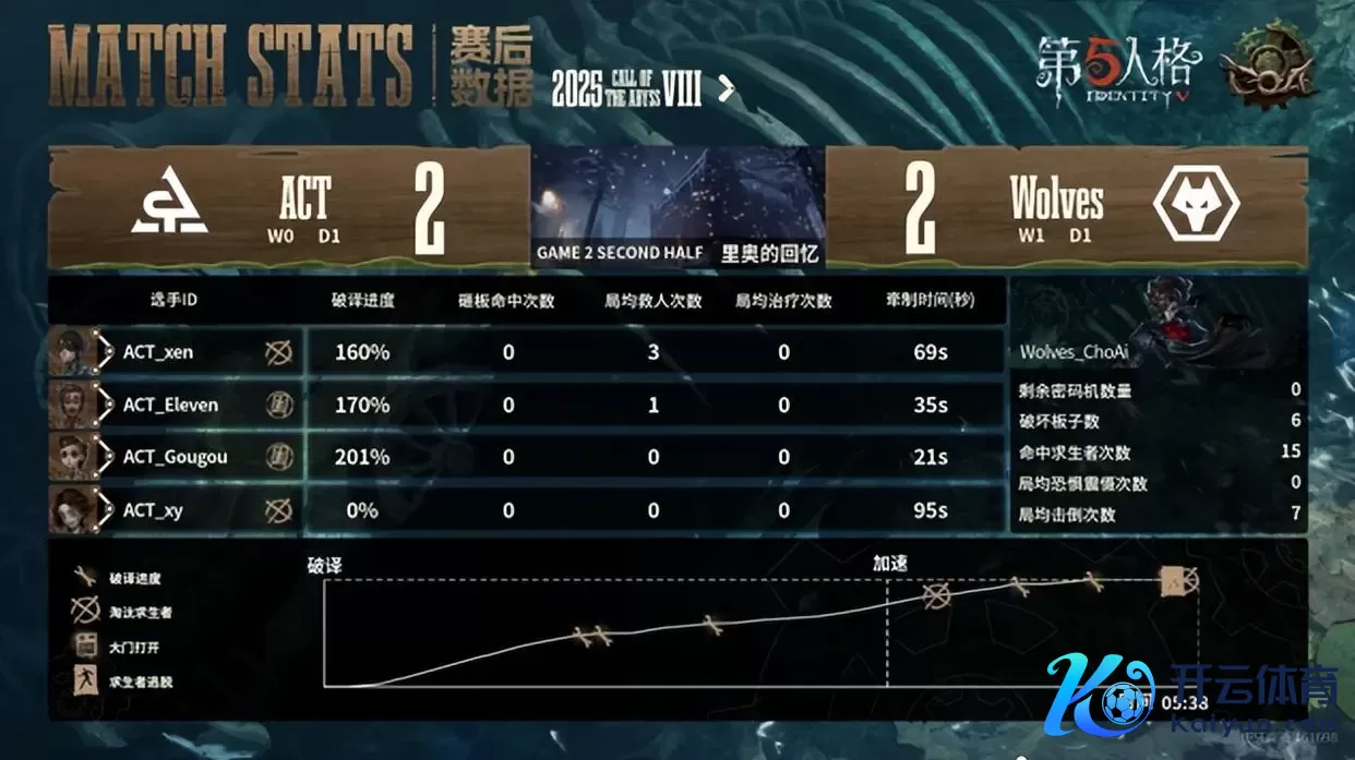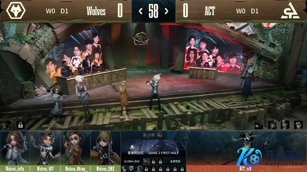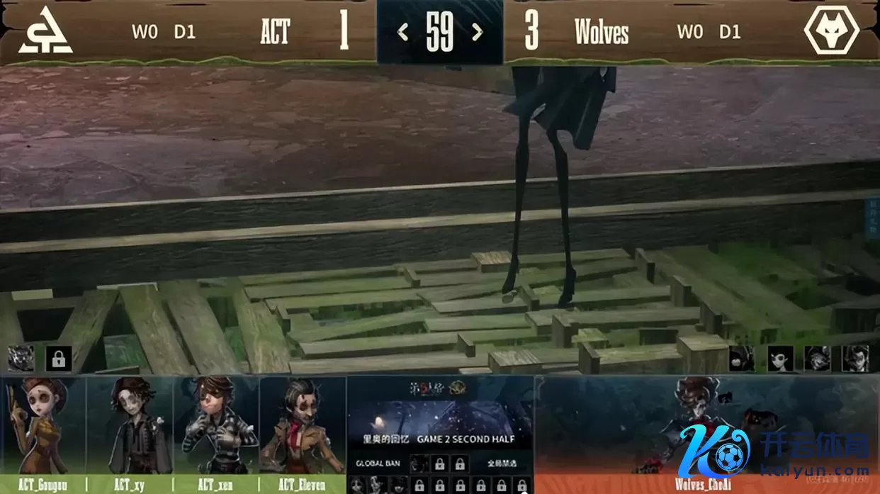 ACT的求生者选择了失火访问员、拉拉队员、病患、啼哭怯夫(BAN时空之影、“喧嚣”);成皆Wolves的监管者ChoAi选择了鹿头。(BAN先知、祭司、古董商、守墓东谈主)