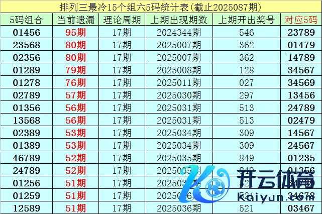 (4)陈列三第2025087期遗漏值最大的十个5码组六组合解冻了0个;