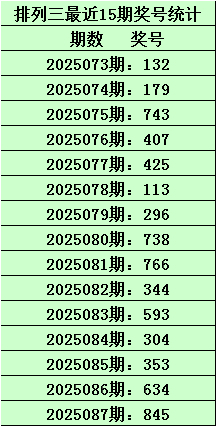 成列三第2025087期开出直选号码845,历史上该号码直选出现13次,前12次出现之后,下期开出号码为:955、619、691、099、381、736、820、453、290、449、708、960,其前后5期永别开出奖号:(统计见下表)