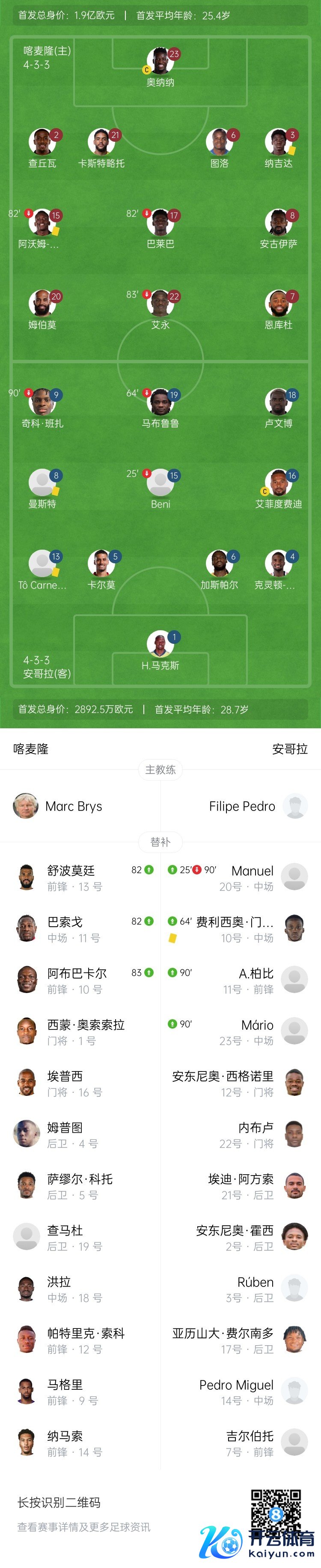 此役,喀麦隆派出的首发阵藏身价高达1.9亿欧,姆贝莫、奥纳纳、安古伊萨、巴莱巴等球星总共首发。而敌手安哥拉首发身价不到2900万欧。