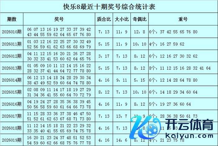 福彩答应8第2026019期开出奖号:16 20 21 23 24 37 48 51 52 53 54 59 60 62 66 68 75 76 77 78,其中奖号质合比为4:16体育集锦,四区比为2:4:7:7,包含4个重号21、23、75、78,包含连码20 21、23 24、51 52 53 54、59 60、75 76 77 78,包含8个邻号16 20 24 54 66 68 76 77。