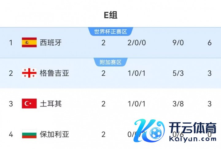 西班牙本月将进行两场世初赛欧洲区比赛:10月12日主场迎战格鲁吉亚,10月15日迎战保加利亚。当今西班牙辞世初赛欧洲区E组2战全胜名表率1。