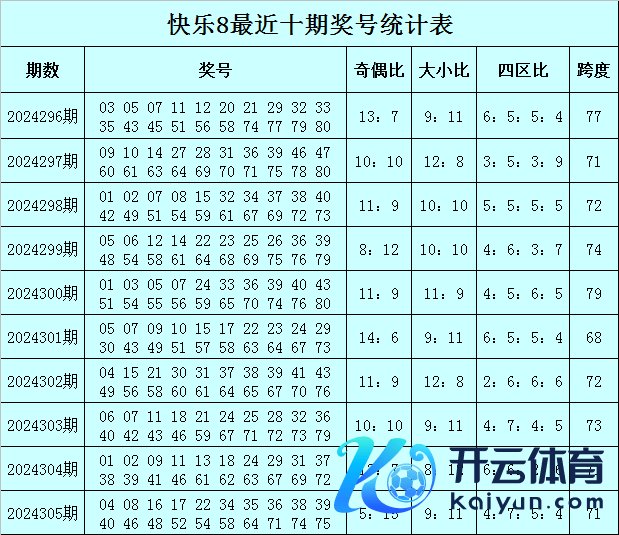 福彩雅瞻念8第2024305期开奖回顾:04 08 16 17 22 34 35 36 38 39 40 46 48 52 54 58 64 71 74 75,其中奖号奇偶比开出5:15,大小比开出9:11,包含3个小奇号码:17 35 39,8个小偶号码:04 08 16 22 34 36 38 40,2个大奇号码:71 75体育录像/图片,7个大偶号码:46 48 52 54 58 64 74。