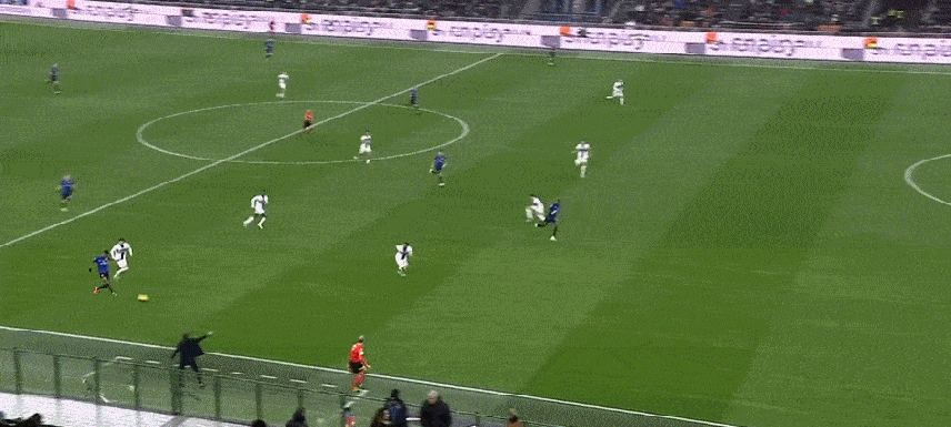 上半场的第19分钟,劳塔罗仍是有一个很漂亮的进球,他接球后径直劲射,皮球应声入彀,可惜给他传球的图拉姆越位在先,劳塔罗进球被吹。