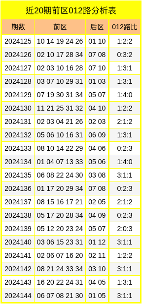 抽象分析,第24145期大乐透前区012路比参考2:1:2。