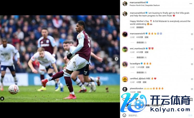 拉什福德赛后也在个东谈主社媒晒出本场相片,配文写谈:“至极振奋终于成绩在维拉首粒进球体育录像/图片,而且匡助球队晋级半决赛。祝大家母亲节&开斋节满足。”