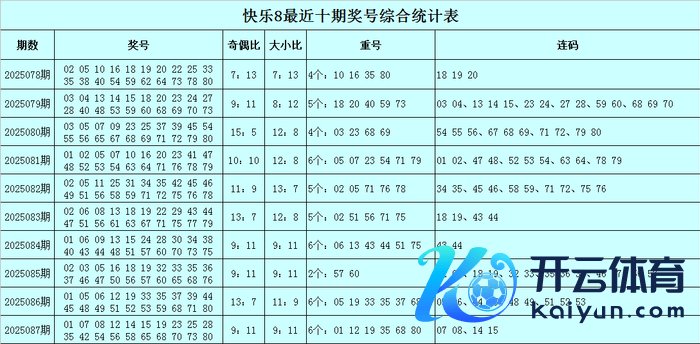 福彩应许8第2025087期开出奖号:01 07 08 12 14 15 19 23 25 28 35 42 54 56 58 65 68 70 73 80,其中奖号奇偶比为9:11,大小比为9:11,包含6个重号01、12、19、35、68、80,包含连码07 08、14 15。