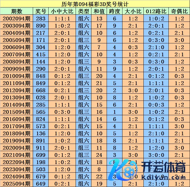 开奖回来:福彩3D第2025094期奖号为:649体育赛事直播。