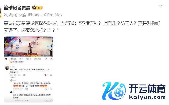 这个操作眨眼间引爆外交媒体。 篮球记者贾磊将这一幕称为“CBA仙葩一景”,制作视频点评谈:“伯仲们,山东队临了一秒逾期深圳3分,这时候细则需要绝平三分,效果高诗岩发边线球径直把球发给了篮下队友,效果队友空篮还没进。 ”这条视频如同火上浇油,让品评声达到顶峰。