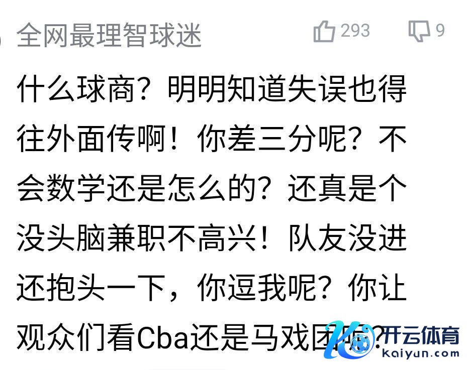 球迷们的大怒聚拢在两点:一是高诗岩在逾期三分情况下的选拔破碎篮球知识,二是他对队友的作风。有球迷直言:“发不出来便是政策没扩充好,扔到篮底便是才智问题! ”还有东谈主讥嘲:“这球怕是连小学生齐懂该投三分! ”