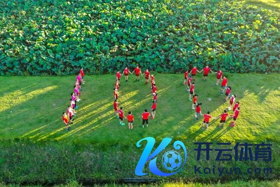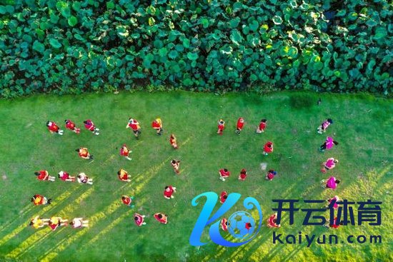 跑友在宽泛跑步的境界间摆出“2021”“100”图案体育赛事直播,请安建党百年(跑友“小花虫”摄)