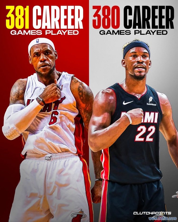 詹姆斯在热火4个赛季共出战381场比赛 巴特勒5.5个赛季出战380场体育赛事直播