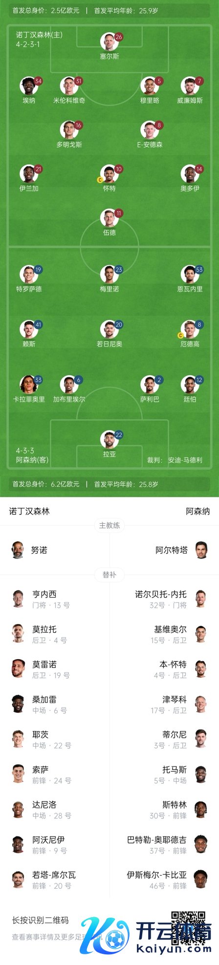 2月27日讯 英超第27轮,诺丁汉丛林主场迎战阿森纳,赛前首发名单公布。